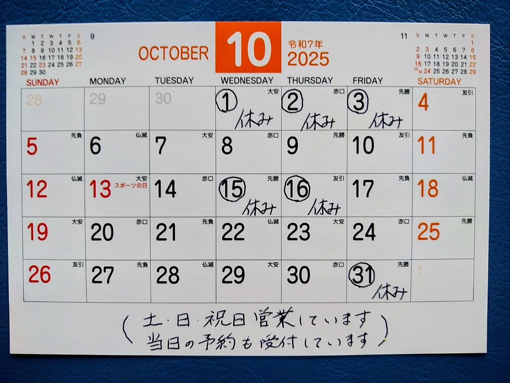初回は、施術時間以外に問診含めてプラス20分程お時間かかりますので、余裕を持ってお越しください。